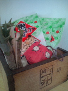 黄金仮面の稽古場で豆まきしたらしい。
